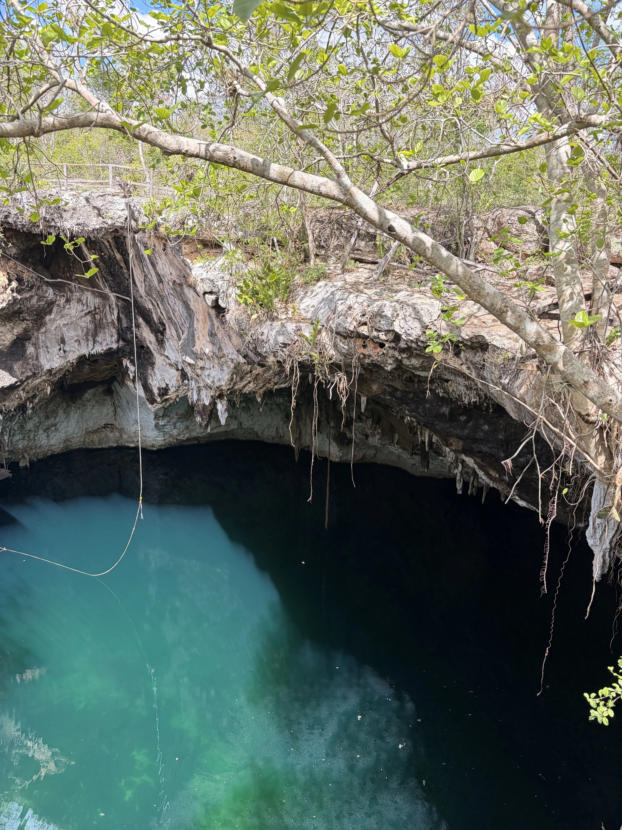 “En el vientre sagrado del cenote, el agua helada me sostuvo como si regresara al origen.”